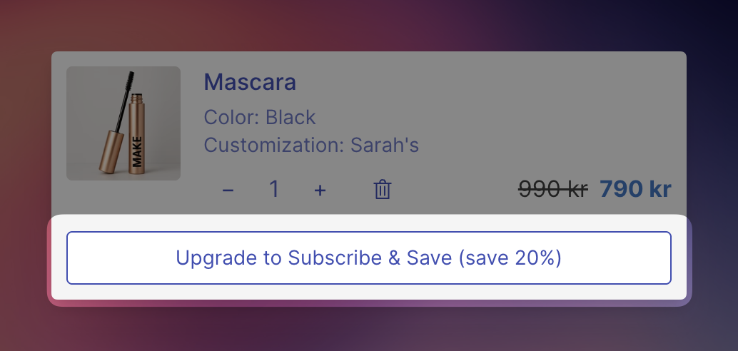 The savings percentage is calculated by comparing the one-time price with the subscription per-delivery price. If prices are equal or the subscription is more expensive, the upgrade option will not appear.
